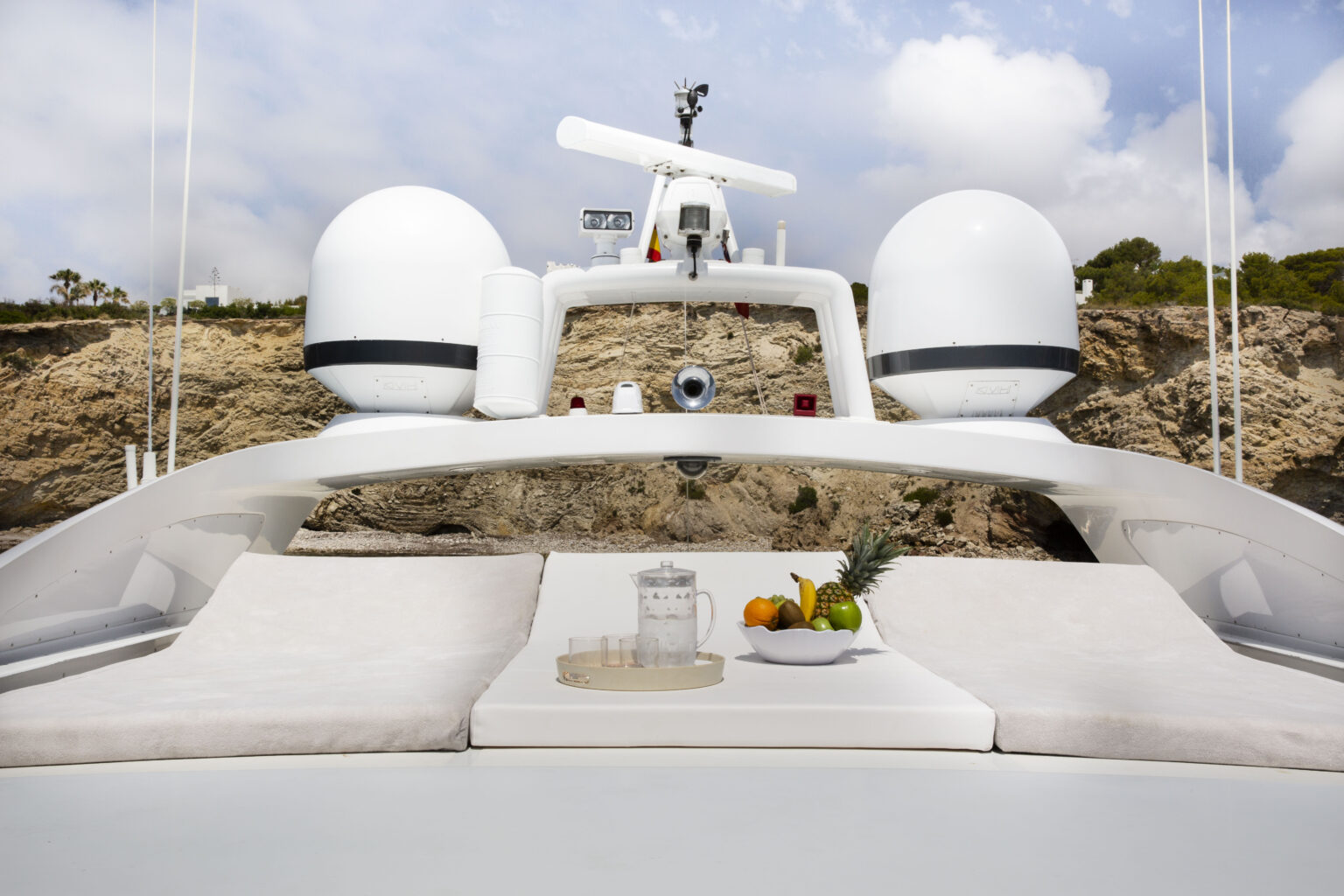 With its sleek profile and powerful engines, this 92-foot motor yacht delivers both speed and smooth cruising, allowing guests to move effortlessly between hidden coves, beach clubs, and open water. Expansive sunbathing areas and an open-plan deck layout create the perfect setting for relaxing, socializing, and enjoying the Mediterranean sun throughout the day.