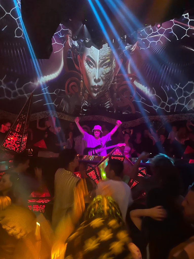 The space occupies the former HEART Ibiza location and was reimagined as Chinois to create a room built around sound, intimacy, and visual texture. Rather than competing on scale, the club leans into proximity. Low ceilings, layered lighting, and a central dancefloor place the crowd close to the booth, creating an immediate connection between artist and audience that feels direct and immersive.