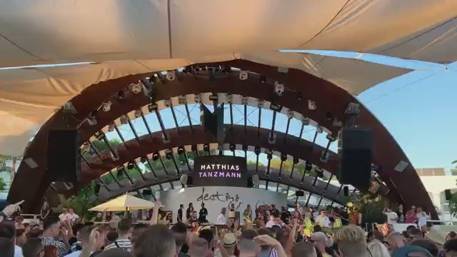 Production remains present but measured. Sound is engineered for an outdoor hillside environment, while lighting and staging are integrated carefully into the landscape. The surrounding views remain part of the visual experience, reinforcing a strong sense of place that is unmistakably Ibiza.