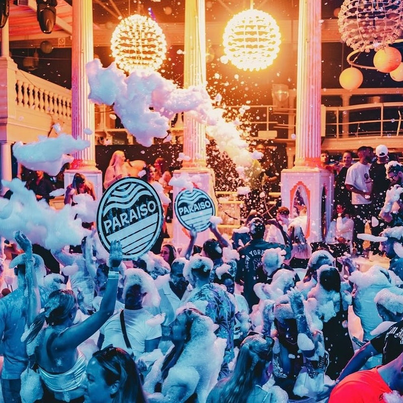 One of the club’s most recognizable traditions is its water-based events, where the dancefloor gradually fills to create a pool-like environment. These moments have become part of Ibiza folklore, reinforcing Es Paradis’ reputation for combining theatrical elements with dancefloor energy in ways that feel playful and communal.