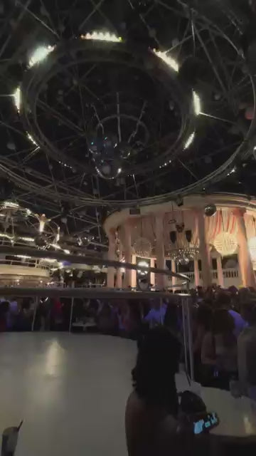 At the heart of Es Paradis is its central dancefloor, surrounded by elevated platforms and viewing points that allow the room to function as both a club and a spectacle. The design encourages movement between levels, with each perspective offering a different view of the crowd and stage. This layered structure contributes to a sense of scale without relying on overwhelming production.