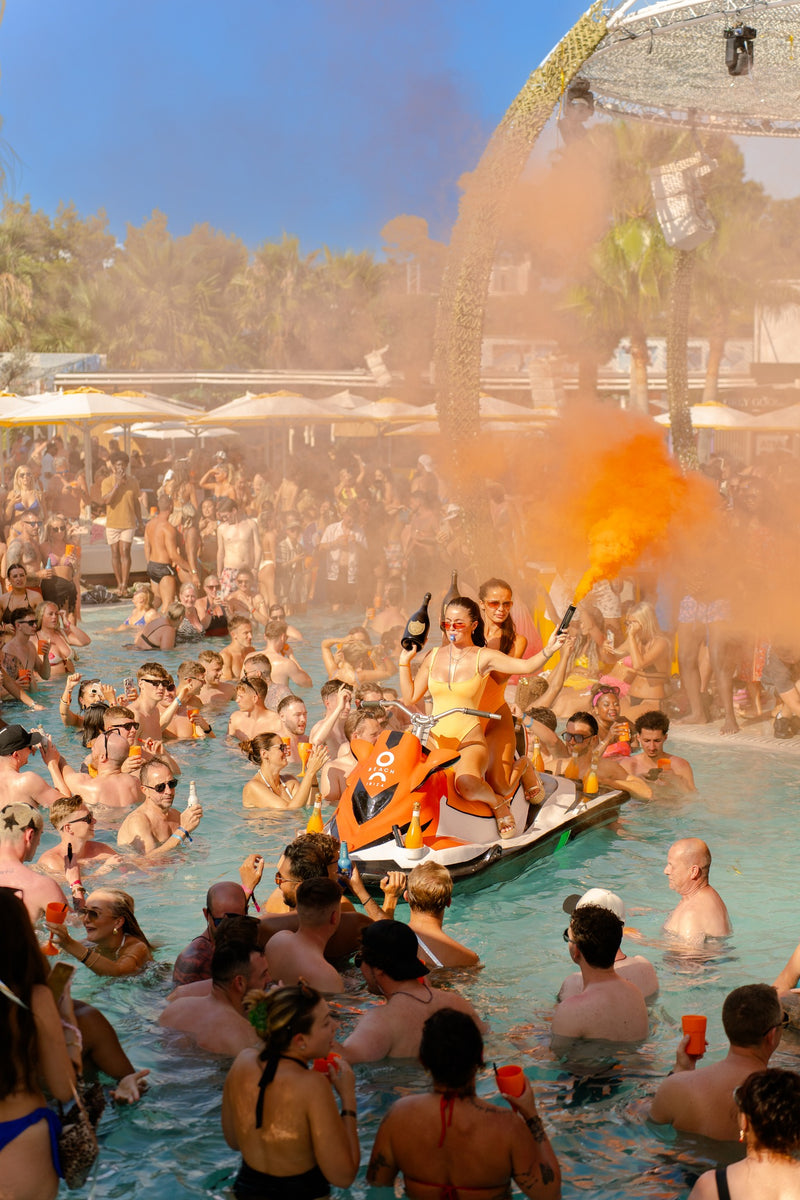 The venue opened in 2012, founded by Wayne Lineker alongside business partners who set out to create a space centered on accessible daytime events. Its circular pool forms the focal point, surrounded by daybeds, terraces, and elevated platforms that keep the crowd visually connected from every angle. The layout encourages constant movement between lounging, dancing, and social interaction.